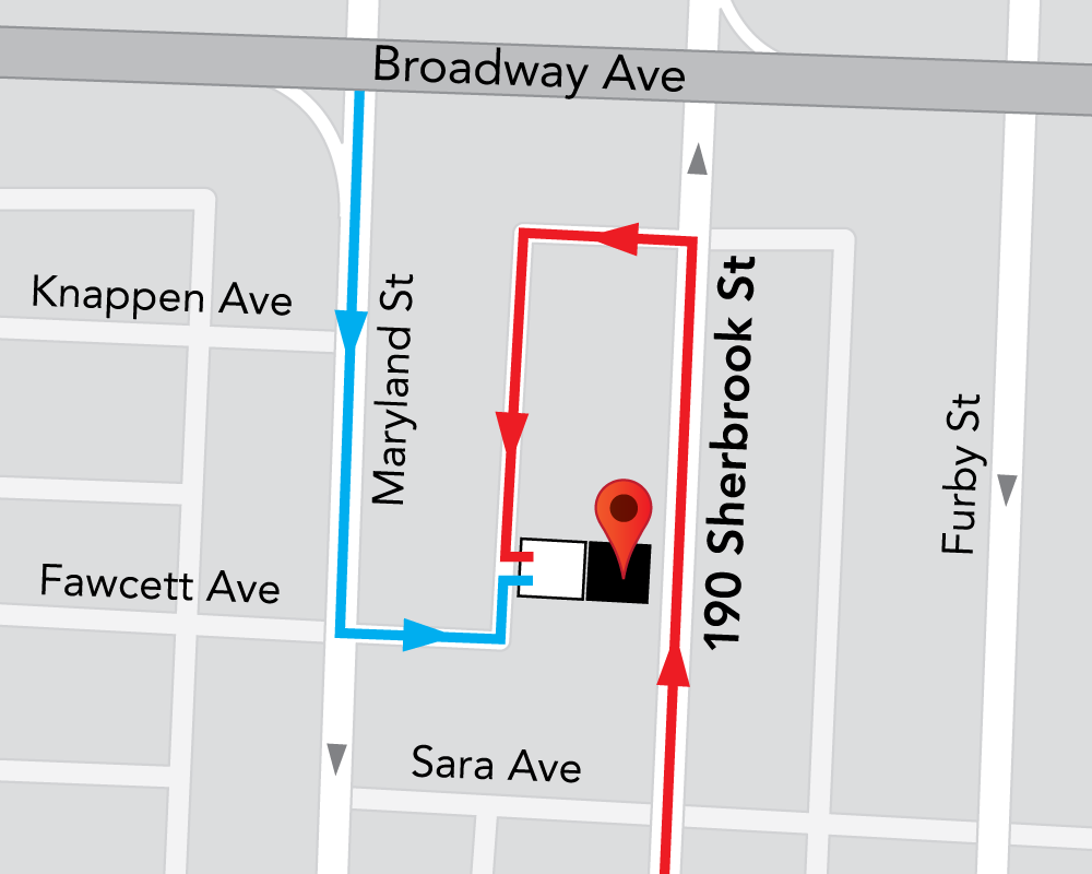 See Winnipeg Transit’s map and a list of buses that will bring you to our office.