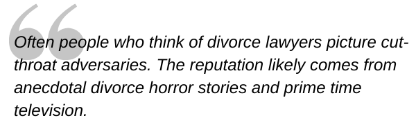 Often people who think of divorce lawyers picture cut-throat adversaries. The reputation likely comes from anecdotal divorce horror stories and prime time television. That image couldn’t be further from the truth when it comes to those in collaborative practice.