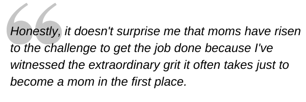 Honestly, it doesn’t surprise me that moms have risen to the challenge to get the job done because I’ve witnessed the extraordinary grit it often takes just to become a mom in the first place.